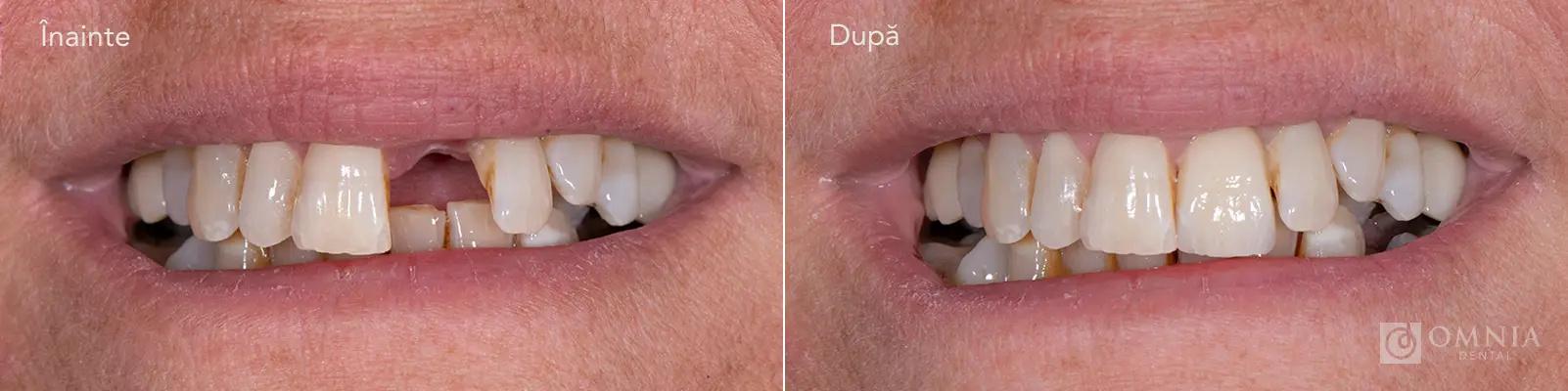 Pentru înlocuirea dintelui lipsă s-a inserat un implant dentar, pe care a fost realizată o coroană ceramică individualizată, restabilind estetica și funcția normală a zâmbetului.